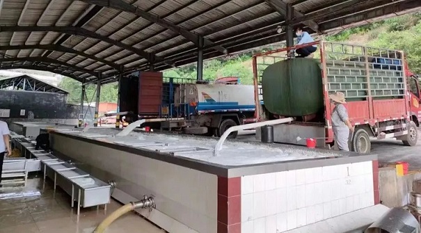 膠農在海南橡膠收膠站點賣膠水。