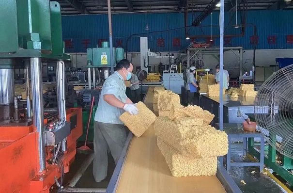 金隆加工分公司包裝車間正抓緊全乳膠的產(chǎn)品包裝生產(chǎn)。