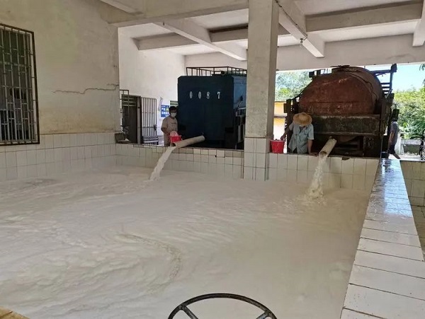 8月27日,是疫情發(fā)生以來西培分公司橡膠復(fù)割復(fù)產(chǎn)的第一天,符振瑤帶領(lǐng)西華派駐組全體員工一邊做好疫情防控工作,一邊狠抓干膠生產(chǎn)不放松。當(dāng)日西華派駐組共完成干膠生產(chǎn)18.6噸。