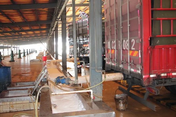 膠水車在金聯(lián)橡膠加工分公司卸膠水。簡日明 攝
