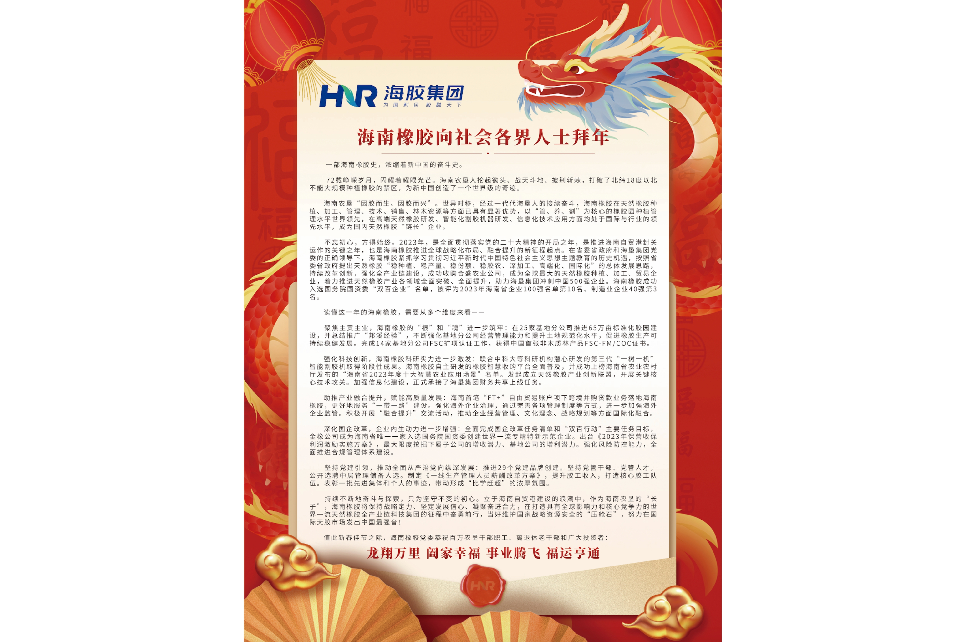 海南橡膠向社會各界人士拜年